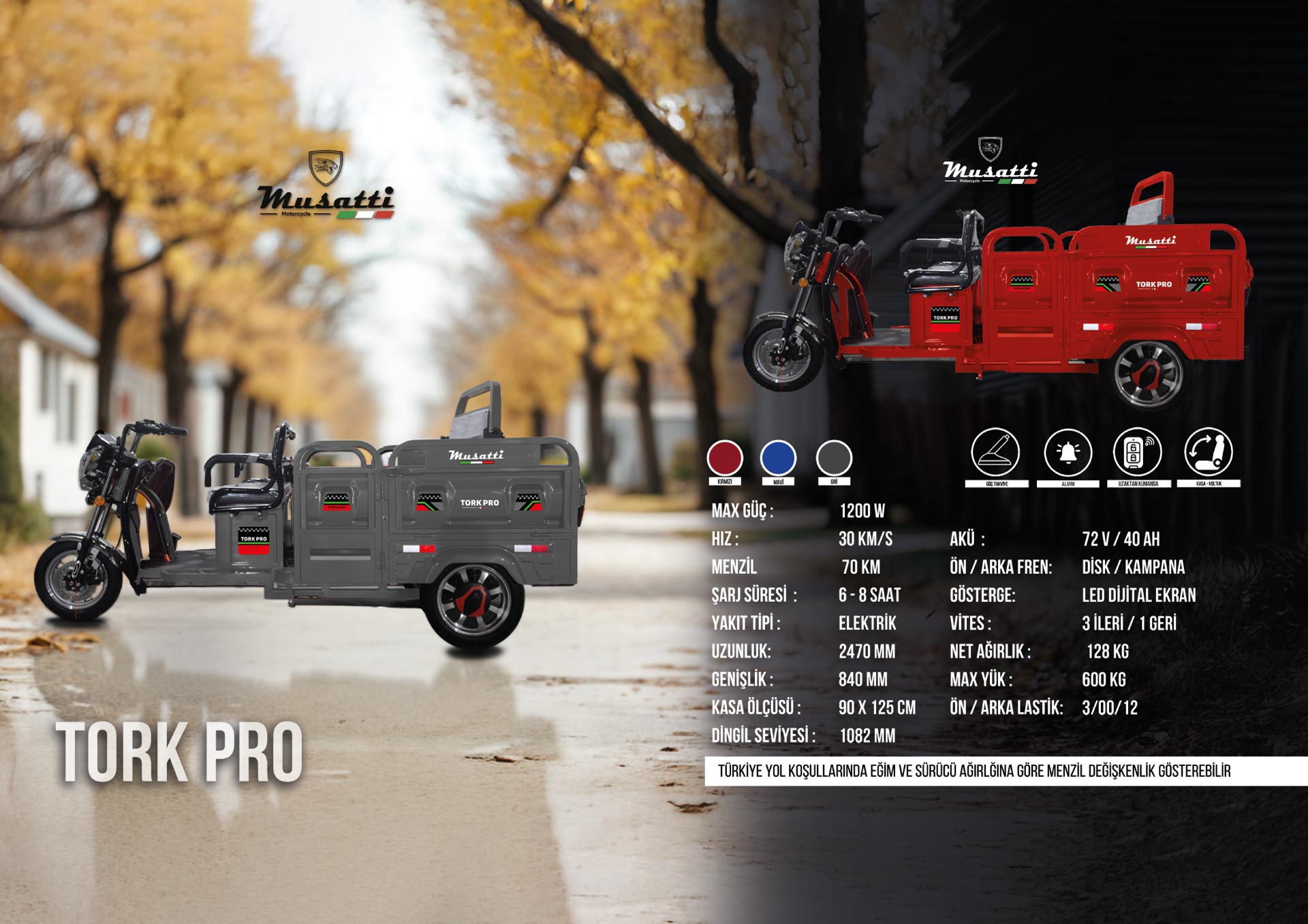 Diğer Özellikler Hız Göstergesi , Arka Kasa , Sırt Dayama , Batarya Seviye Göstergesi , Güç Takviye